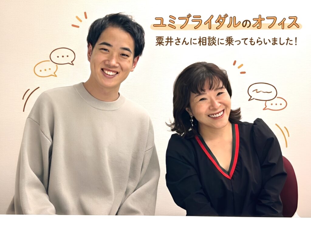 縁をご利用いただいている皆様の婚活をより一層サポートするため、この度粟井さんと業務提携契約を結び、ユミブライダルをご紹介させていただくことになりました!