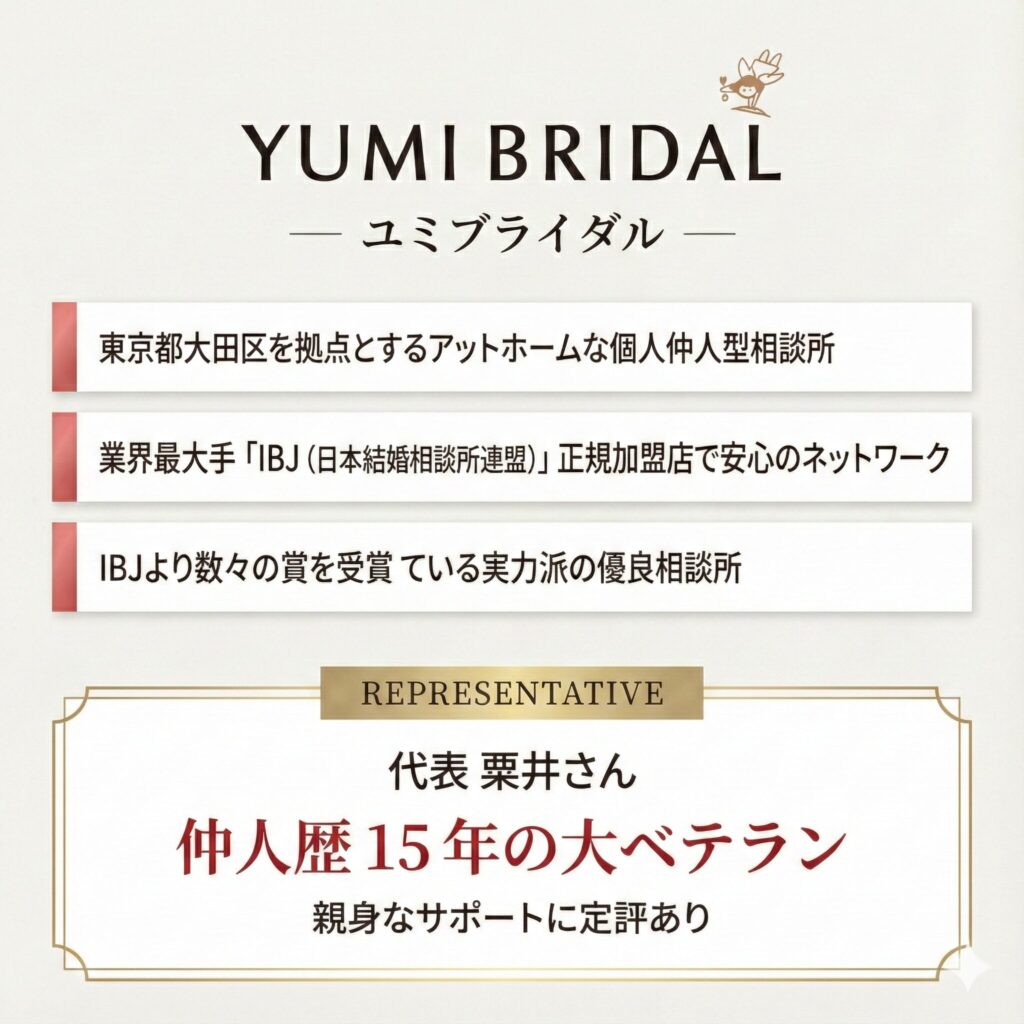 この記事では、結婚相談所の魅力と、運営が皆様におすすめするユミブライダルについてご紹介しました。
