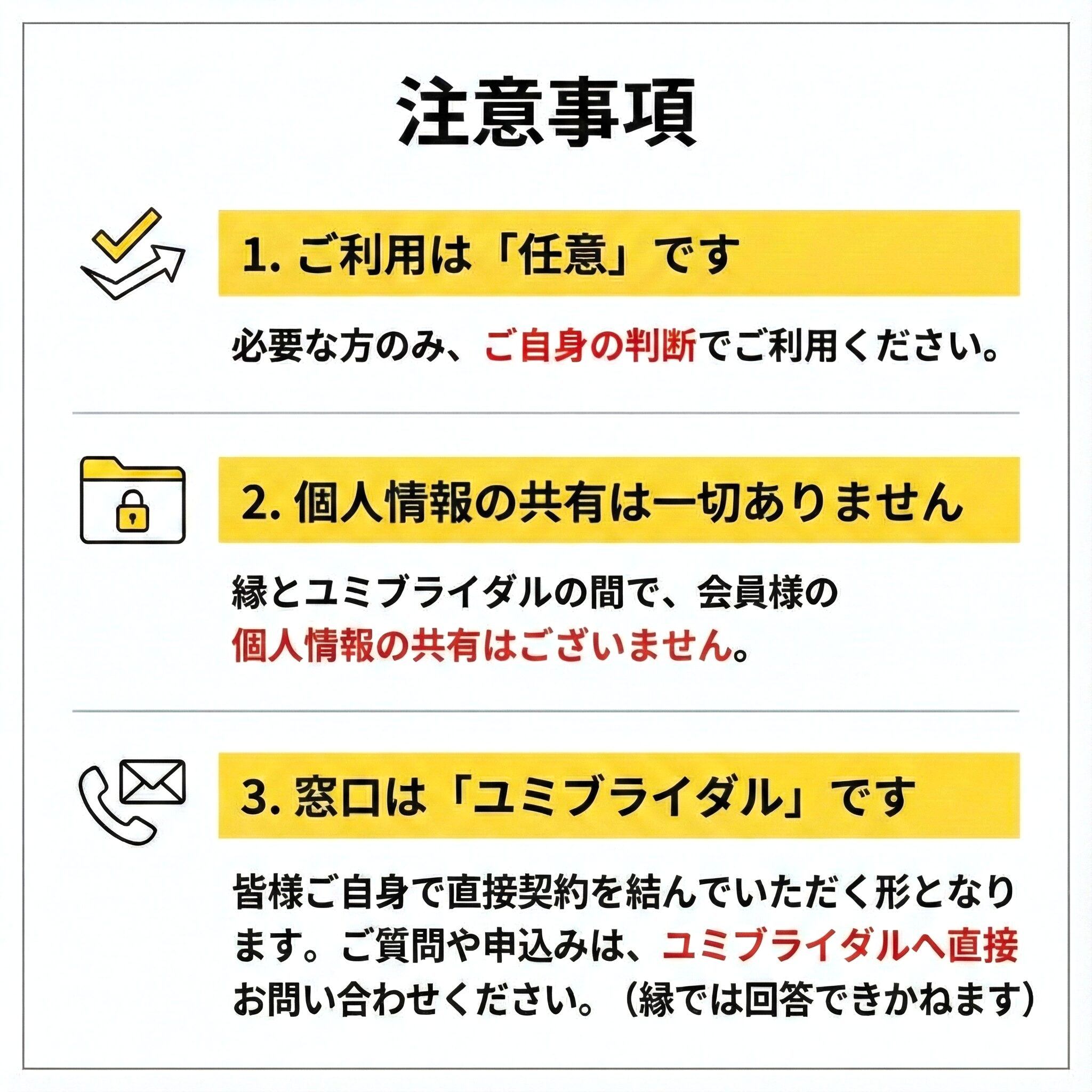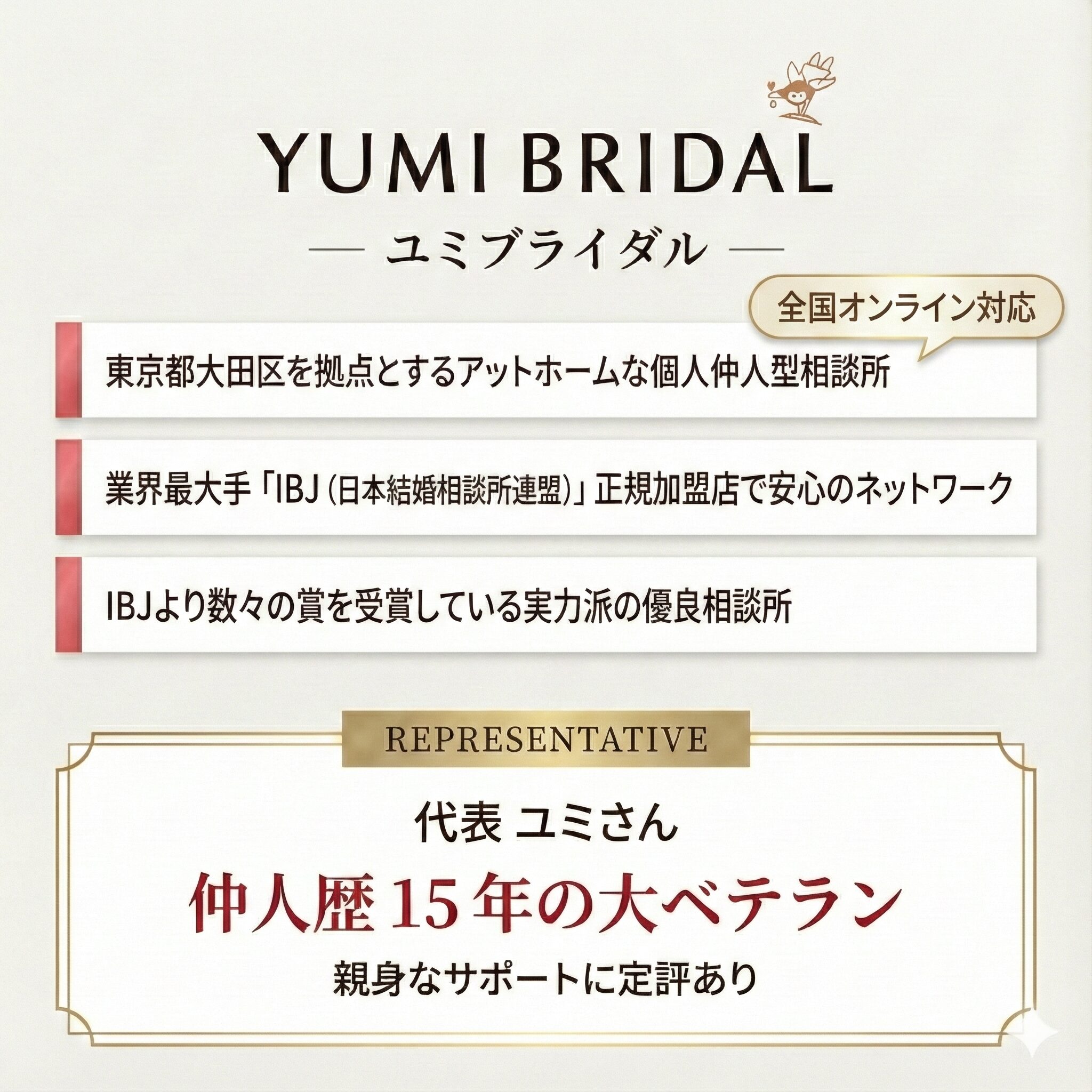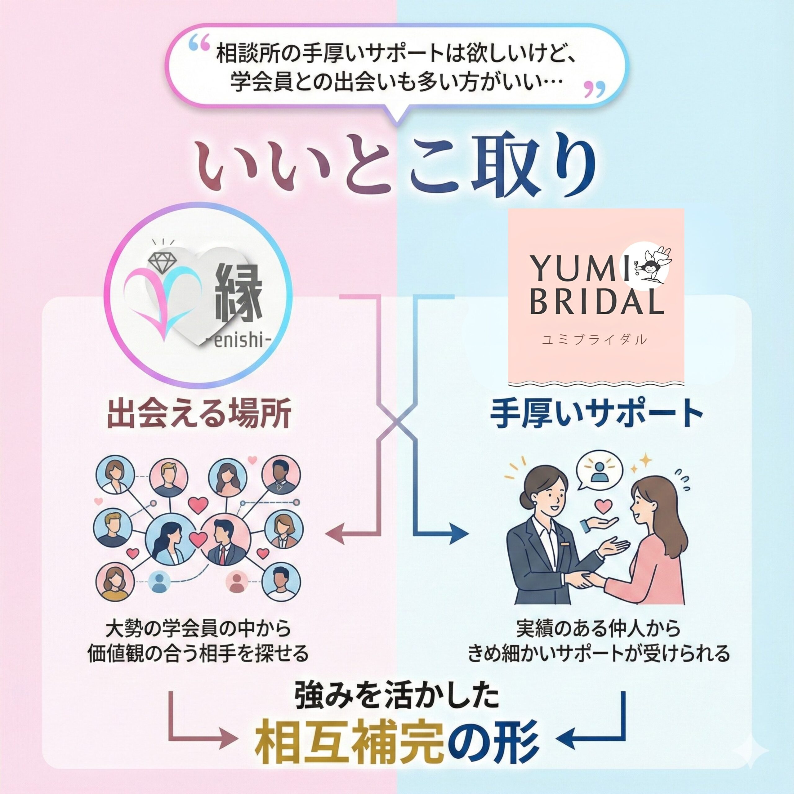 縁をご利用いただいている皆様の婚活をより一層サポートできるよう、この度粟井さんと業務提携契約を結び、ユミブライダルをご紹介させていただくことになりました!